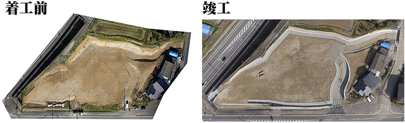 ICT技術を活用した、活用工事を紹介いたします。専用ドローンにて空撮を行い、現場工事を3D化しデータに起こします。